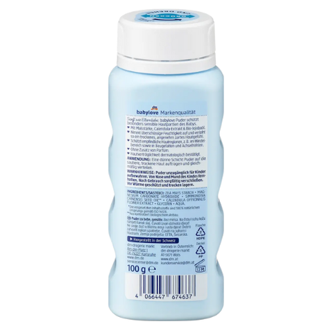 Sản phẩm Babylove Babypuder Sensitive được chế tạo từ các thành phần tự nhiên, an toàn và dịu nhẹ cho làn da nhạy cảm của bé. Dưới đây là danh sách thành phần chính: