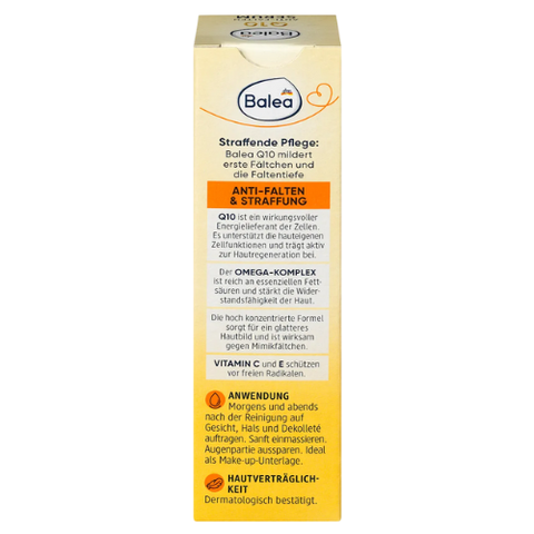 Sản phẩm đến từ thương hiệu chăm sóc da nổi tiếng Balea – Đức, với công thức cải tiến chứa Coenzyme Q10 tự nhiên và vitamin C & E, giúp giảm rõ rệt nếp nhăn chỉ sau 2 tuần sử dụng (theo khảo sát từ 92% người dùng), đồng thời tăng độ đàn hồi, làm sáng da và ngăn ngừa lão hóa sớm.