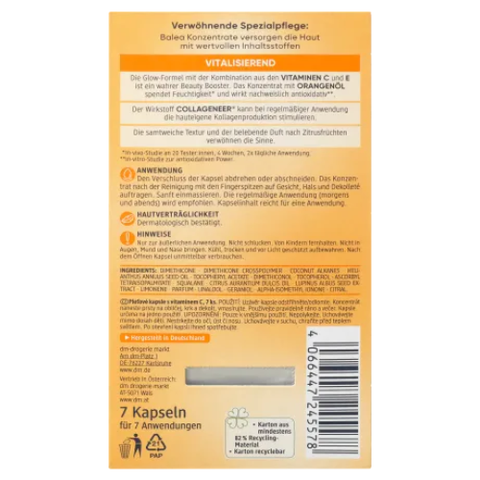 Serum dạng viên nang Balea Vitamin C Konzentrat là một sản phẩm chăm sóc da chuyên biệt, giúp cải thiện sắc tố da, làm sáng da và giảm thâm nám hiệu quả. Đây là lựa chọn lý tưởng cho những ai đang tìm kiếm giải pháp dưỡng da chuyên sâu để có được làn da rạng rỡ, đều màu.